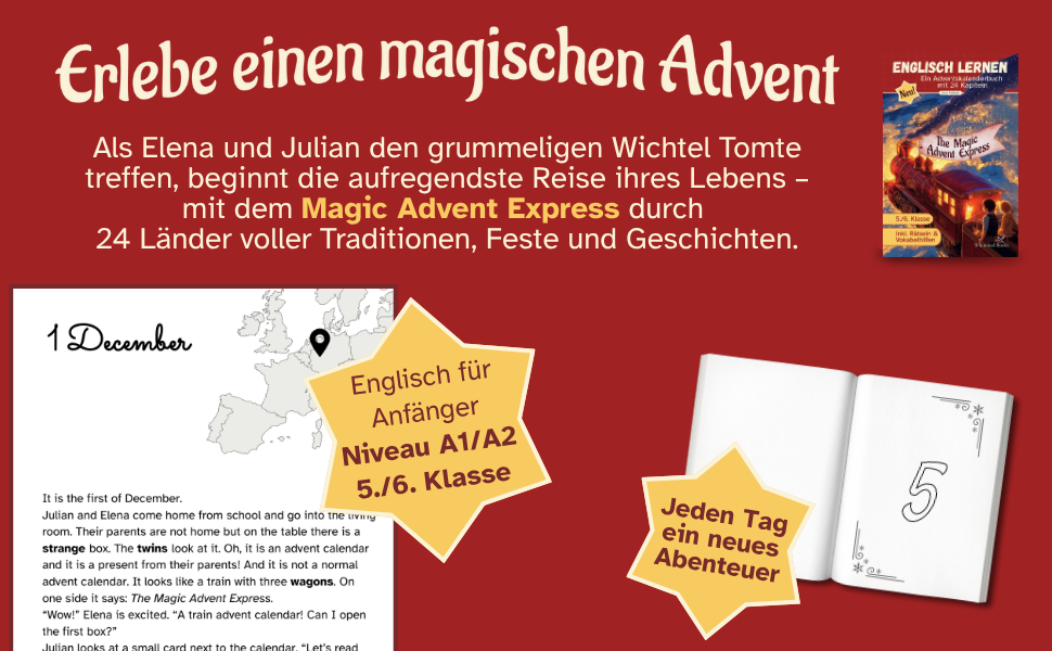 Gemeinsam mit den Zwillingen Elena und Julian und dem grummeligen Gnom Tomte reisen die Kinder im Magic Advent Express rund um die Welt!