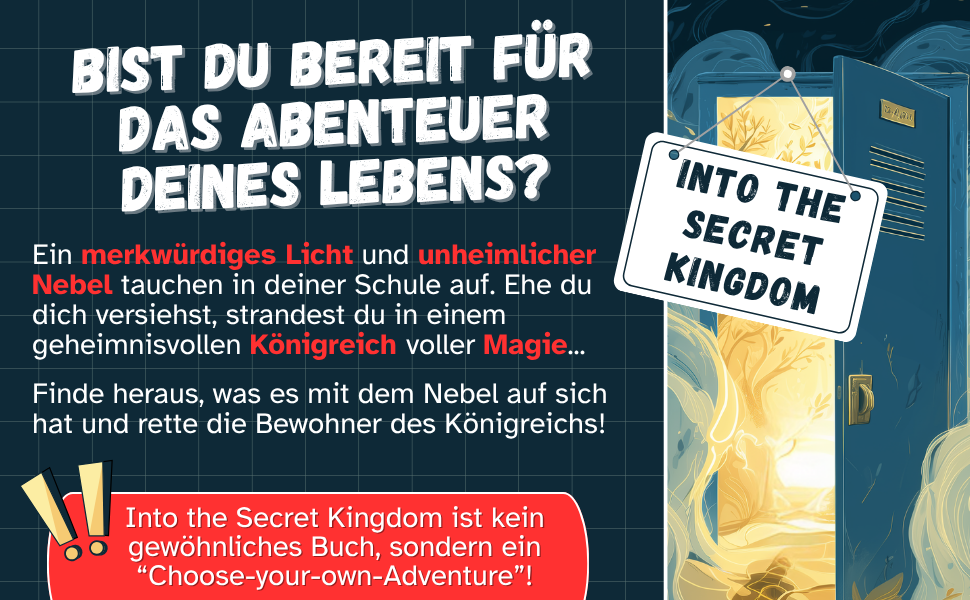 Von der Schule in eine andere Welt: Ein verwunschener Wald, eine verlassene Stadt am Fluss, ein Nebel-Labyrinth und ein Herz aus dunklem Kristall. Mit deinen Begleitern — je nach Entscheidung sind das eine weise Schildkröte, ein witziges Irrlicht, ein alter Baumgeist und noch weitere — suchst du den Weg nach Hause, stellst dich gefährlichen Nebelwesen und rettest am Ende das Königreich (hoffentlich!).