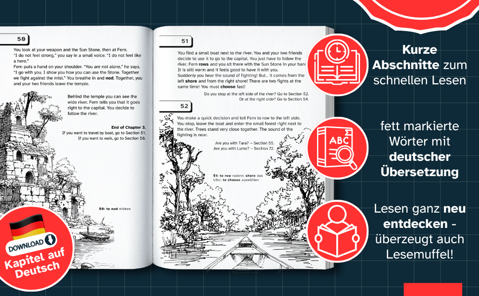 Ergänzt den Englischunterricht und verbessert Wortschatz, Lesekompetenz und Textverständnis, während eine spannendes Fantasy-Entscheidungsgeschichte erlebt wird. Auch als abwechslungsreiche und zugleich sinnvolle Ferienbeschäftigung bestens geeignet.
