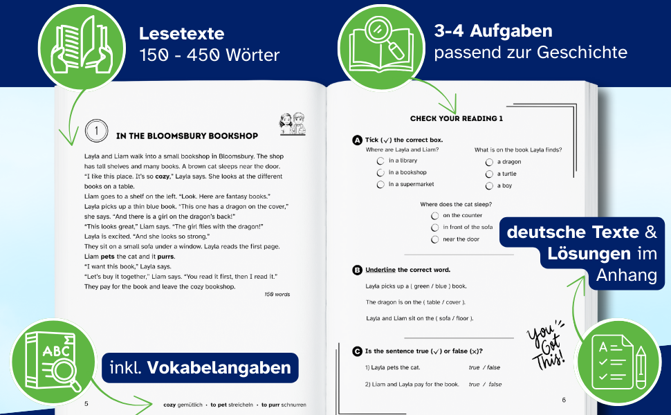 Klar strukturierte Übungen, die Sicherheit im Lesen schaffen.